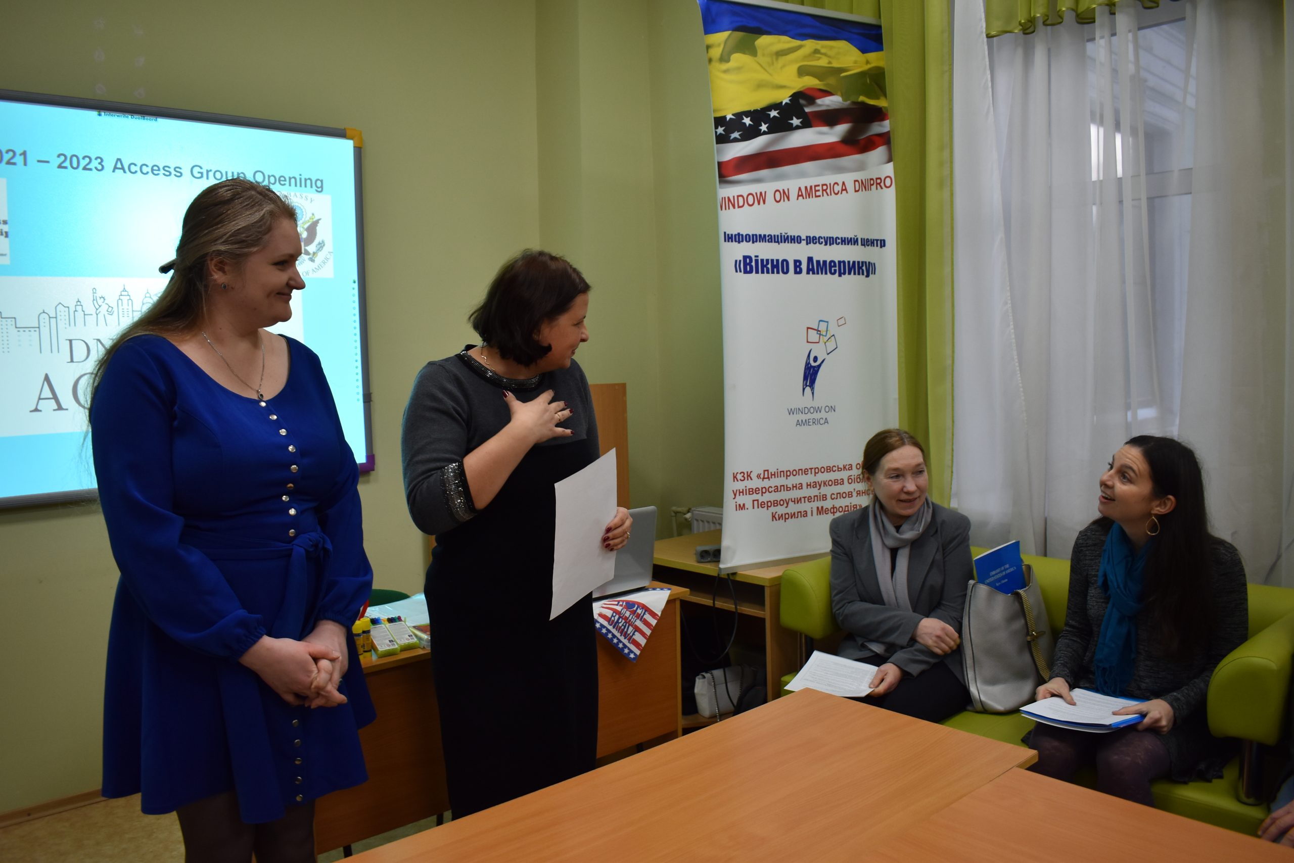 Access Dnipro team were very lucky to have three months of offline classes with the group as well as the Grand Opening with the Embassy representatives: Lottie Baker, Liliia Shylo and Andrii Haidamashko.
