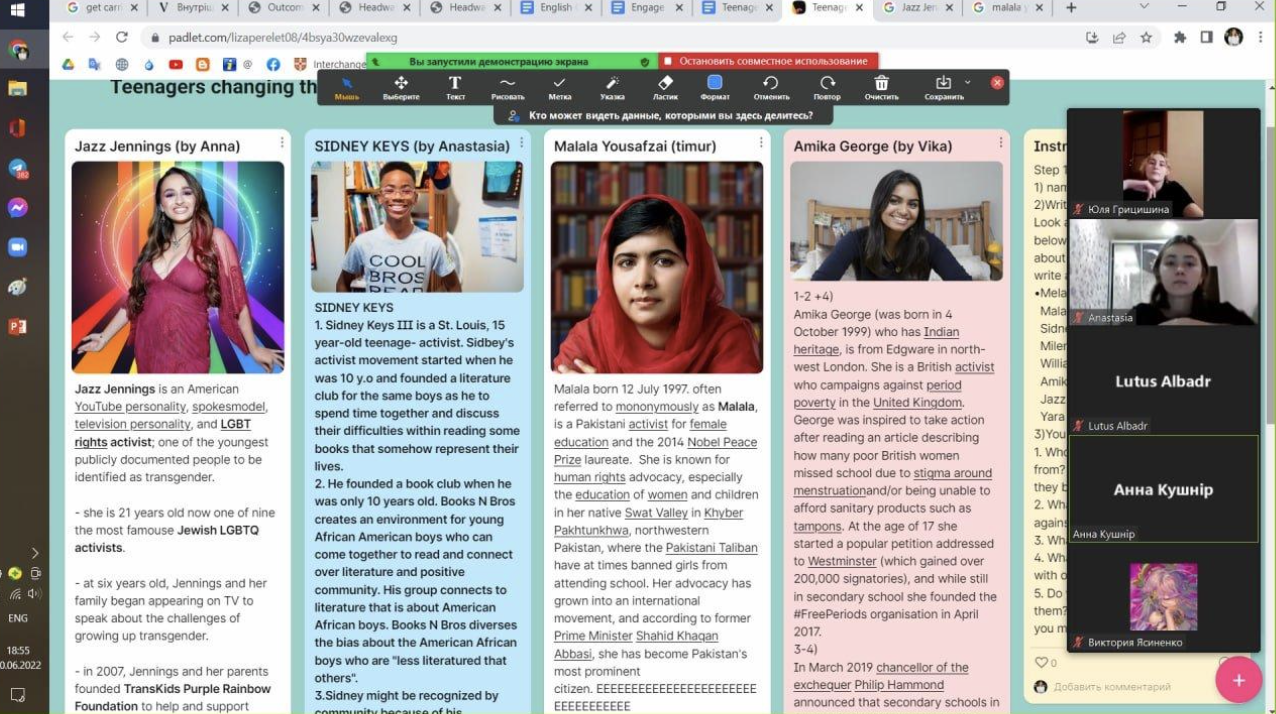 For that reason, at one of summer intensive sessions we discussed such topic as taking actions and learned about teenage activists.